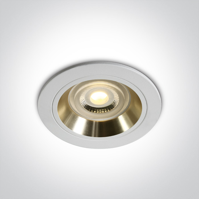 Spot încastrat Dark Light de culoare ALB-Alama cu soclu de bec GU10. Respectă standardul EN60598-1 și orice alte standarde specifice.